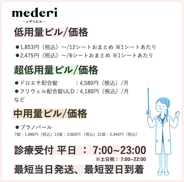 1,650円 | 当日発送、翌日到着 | 550円 | 7:00~24:00 診療時間は土日祝日をはじめ日によって 異なる場合があります。 |