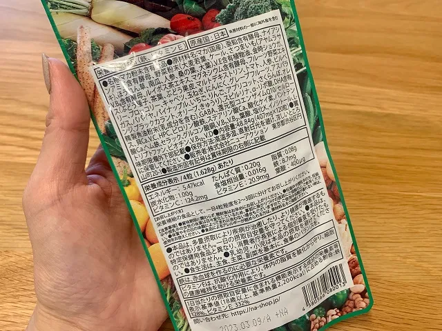 裏面を見てみると、原材料がびっしり! さまざまな栄養素がギュッと凝縮されているのがわかります。