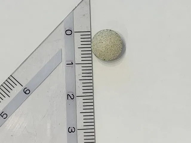 錠剤の大きさは、直径約9mm、厚さ約4~5mmくらいです。少し大きさはありますが、表面はツルツルしており飲み込みやすそうな形状です。