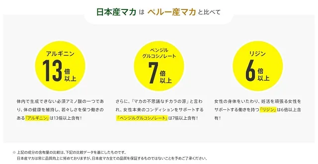 - 栄養価の高い日本産マカを業界トップクラスで配合