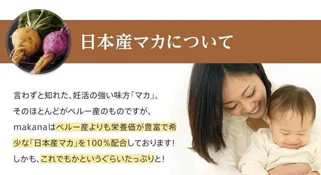マカナ葉酸サプリに配合されているマカは、ペルー産よりも栄養価が高い「日本産」にこだわっています。