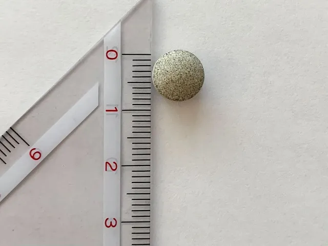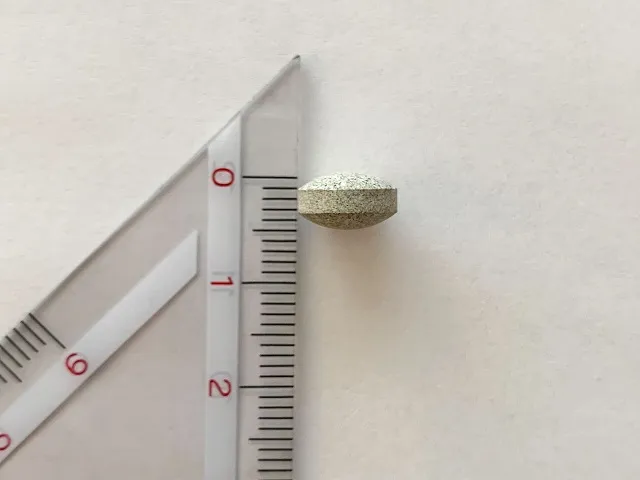 錠剤の大きさは、直径約8mm、厚さ約4mmくらいです。葉酸サプリの中では、やや小ぶりなサイズで飲みやすそうですね!
